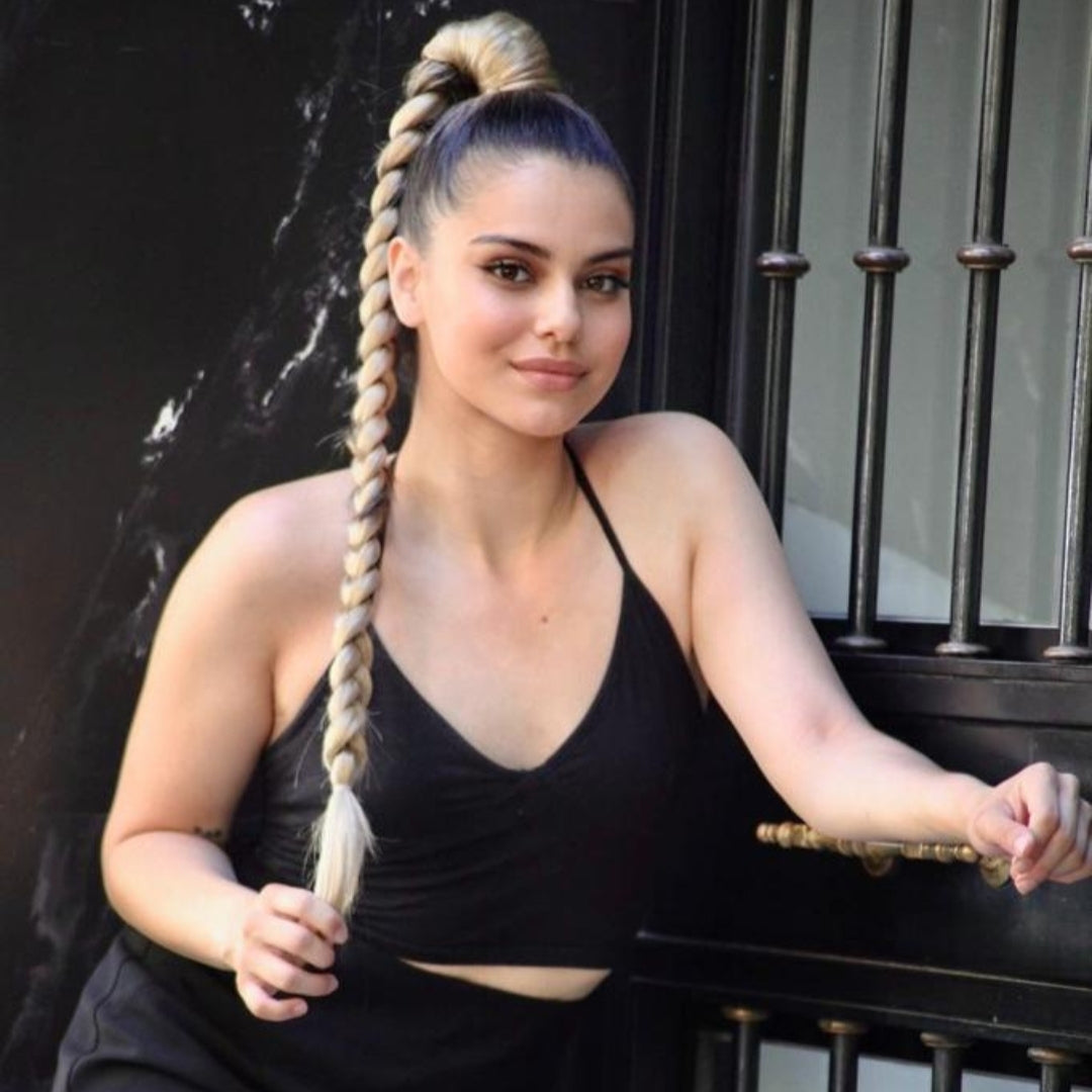 Si buscas un look elegante pero con carácter, la trenza Kim es tu mejor elección. Una sola trenza larga y perfectamente tejida que cae con una caída impecable y llena de volumen, aportando un aire de seguridad y empoderamiento en cada paso.